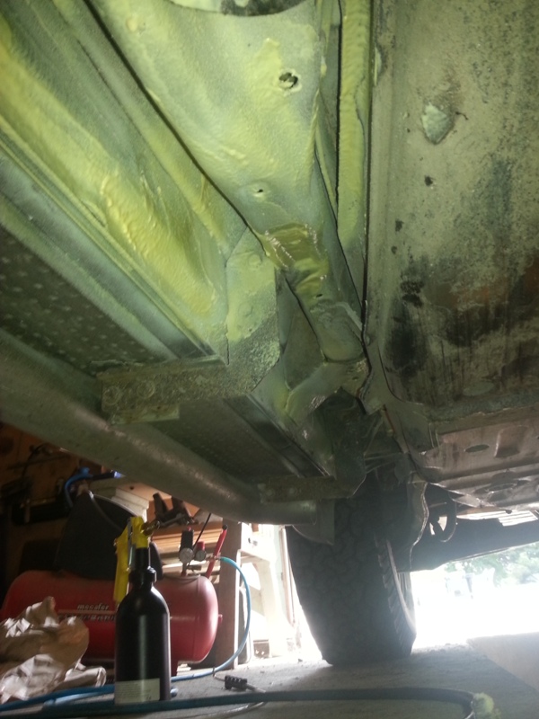 Hier noch das Ergebnis von 8kg Fett, es hat für Schweller und Rahmen sowie die Radhäuser und den Motor + Getriebeträger gereicht, Unterboden hab ich aber nur 90% mit der gewünschten Schichtdicke geschafft, da muss im Frühjahr noch mal was drüber.