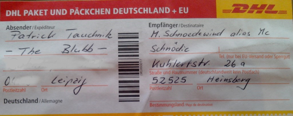 Warum der Postbote so blöd gegrinst hat wurde mir aber erst klar als ich mir den Paketaufkleber angesehen habe: