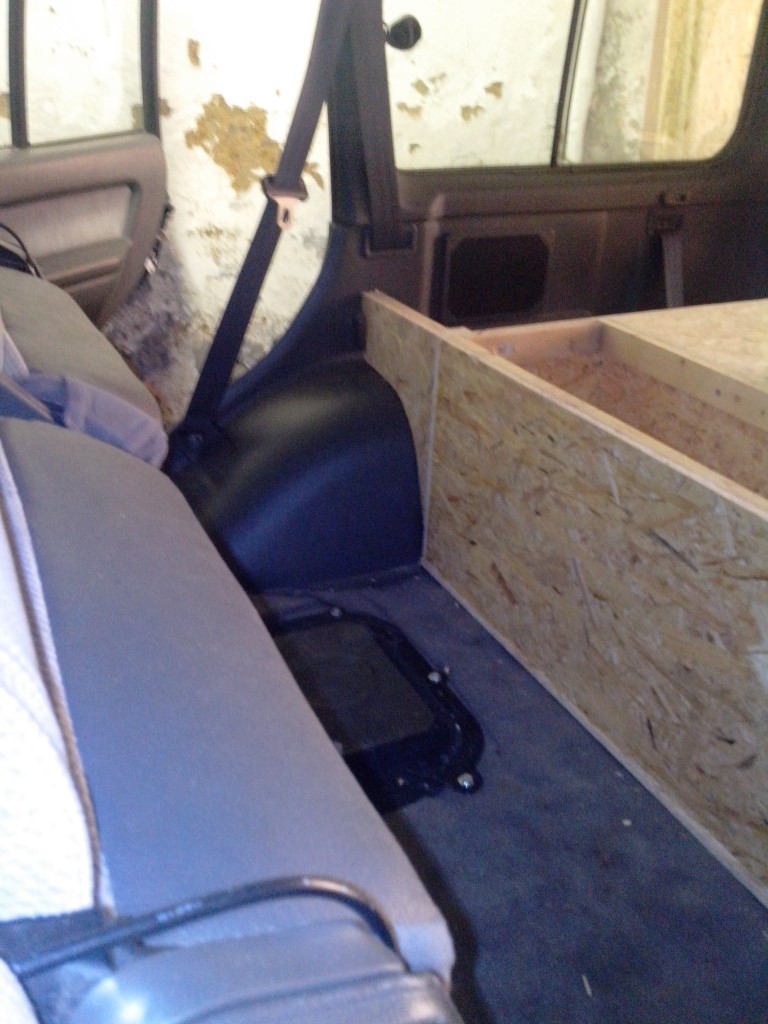 Die Zwischenräume auf der Seite der Rücksitzbank über den Radkästen zugemacht.