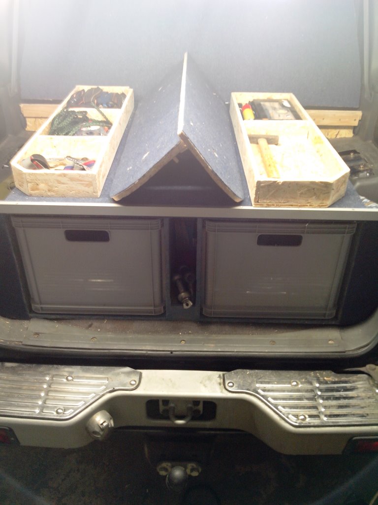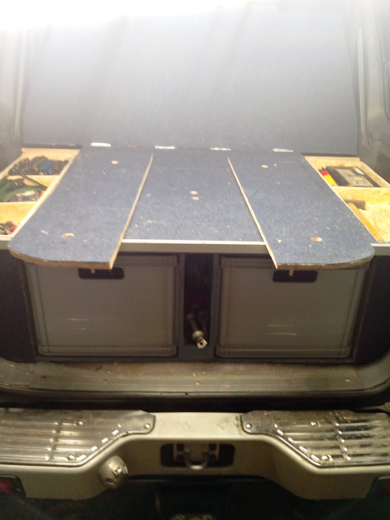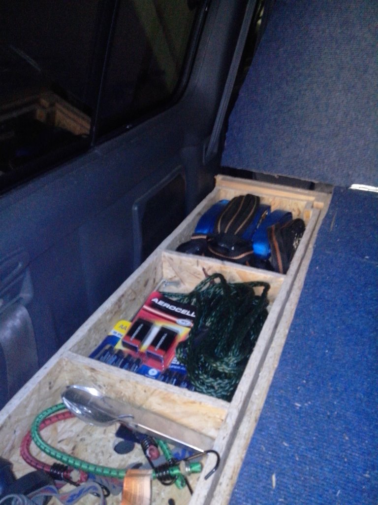 Da ich unter der Liegefläche über den Radkästen noch Stauraum habe, konnte man da auch noch so einiges unterbringen.