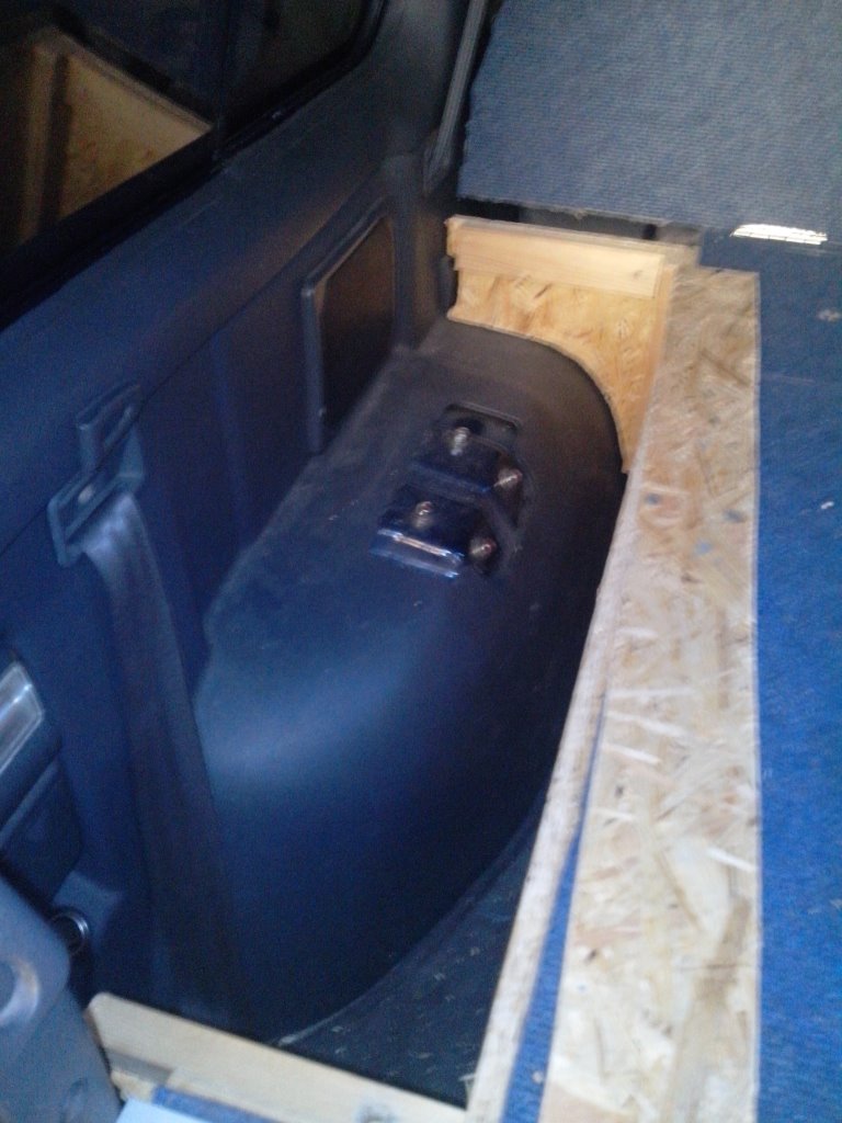 So sieht das Teil aus. Links liegt es auf der Radkastenverkleidung auf. Rundherum auf Leisten.
