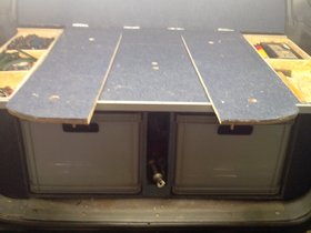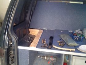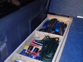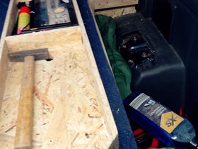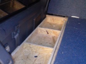 Da ich unter der Liegefläche über den Radkästen noch Stauraum habe, konnte man da auch noch so einiges unterbringen.
