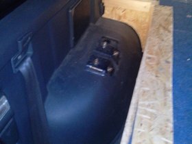 So sieht das Teil aus. Links liegt es auf der Radkastenverkleidung auf. Rundherum auf Leisten.