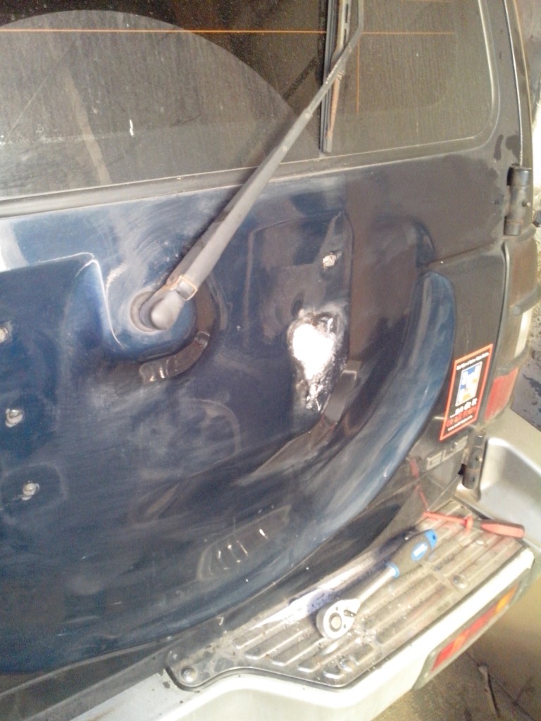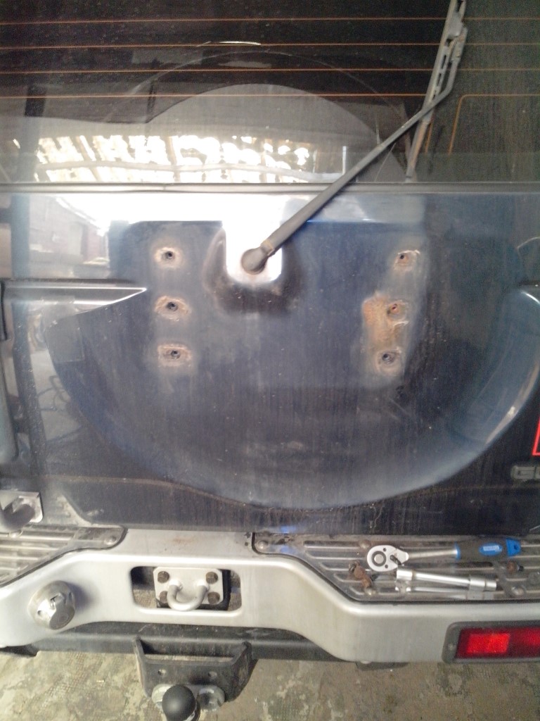 Reserveradhalterung abgenommen ... eigentlich nicht so schlimm ...