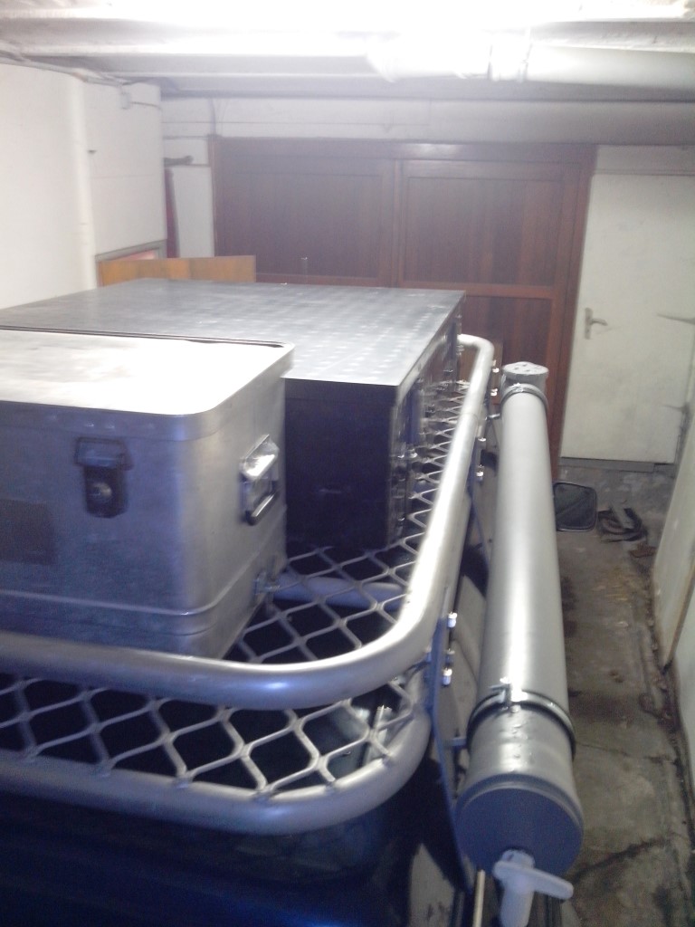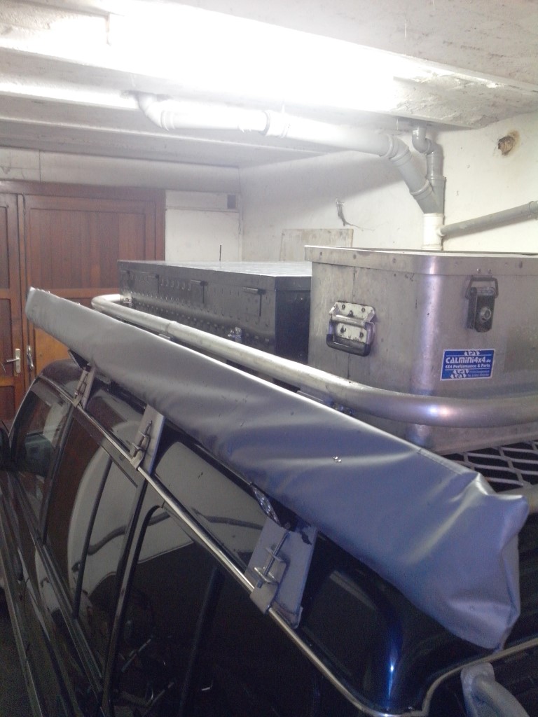 So ... Cheffechen hat denn heute seinen Landrover verkauft und sein Versprechen gehalten mir die dafür angefertigte Dachbox zu überlassen.