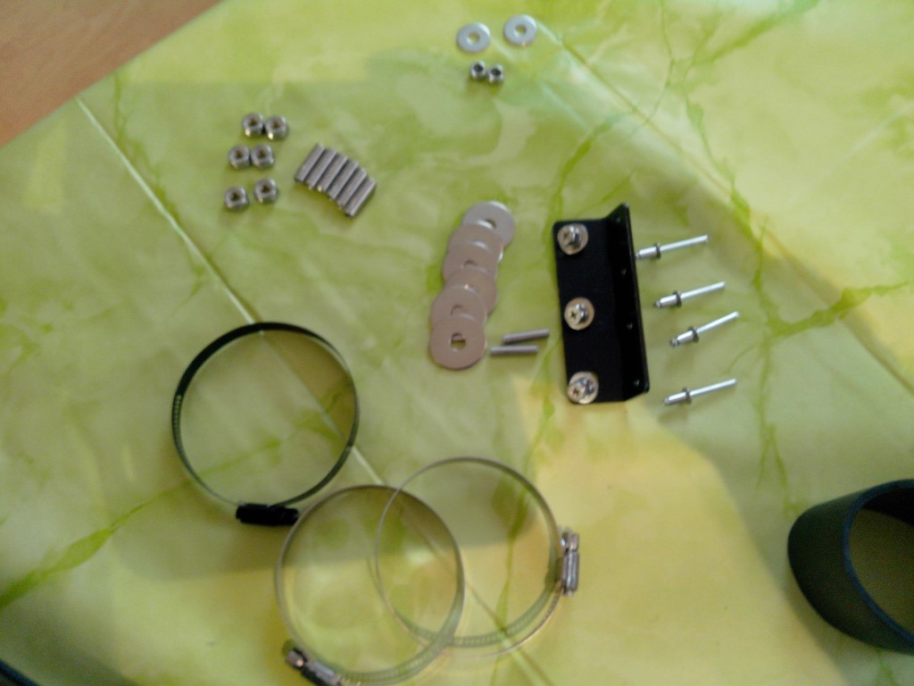 Eine schwarze Schelle für den Kopf, die anderen für den Flansch und die Dichtung.