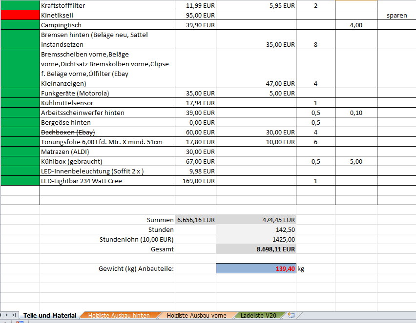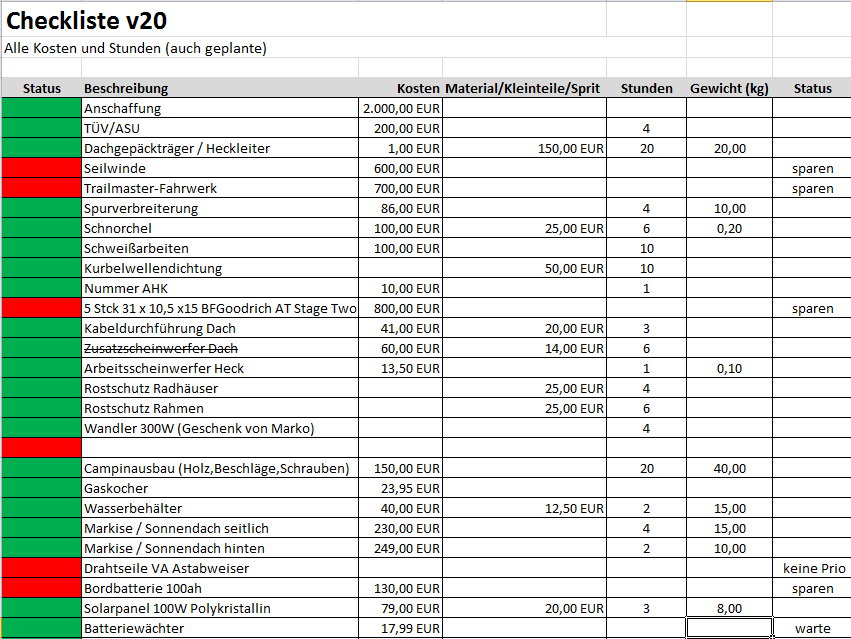 Ich hatte mir gleich zu Beginn des Projektes eine Excel-Tabelle erstellt um einen Überblick zu behalten ...