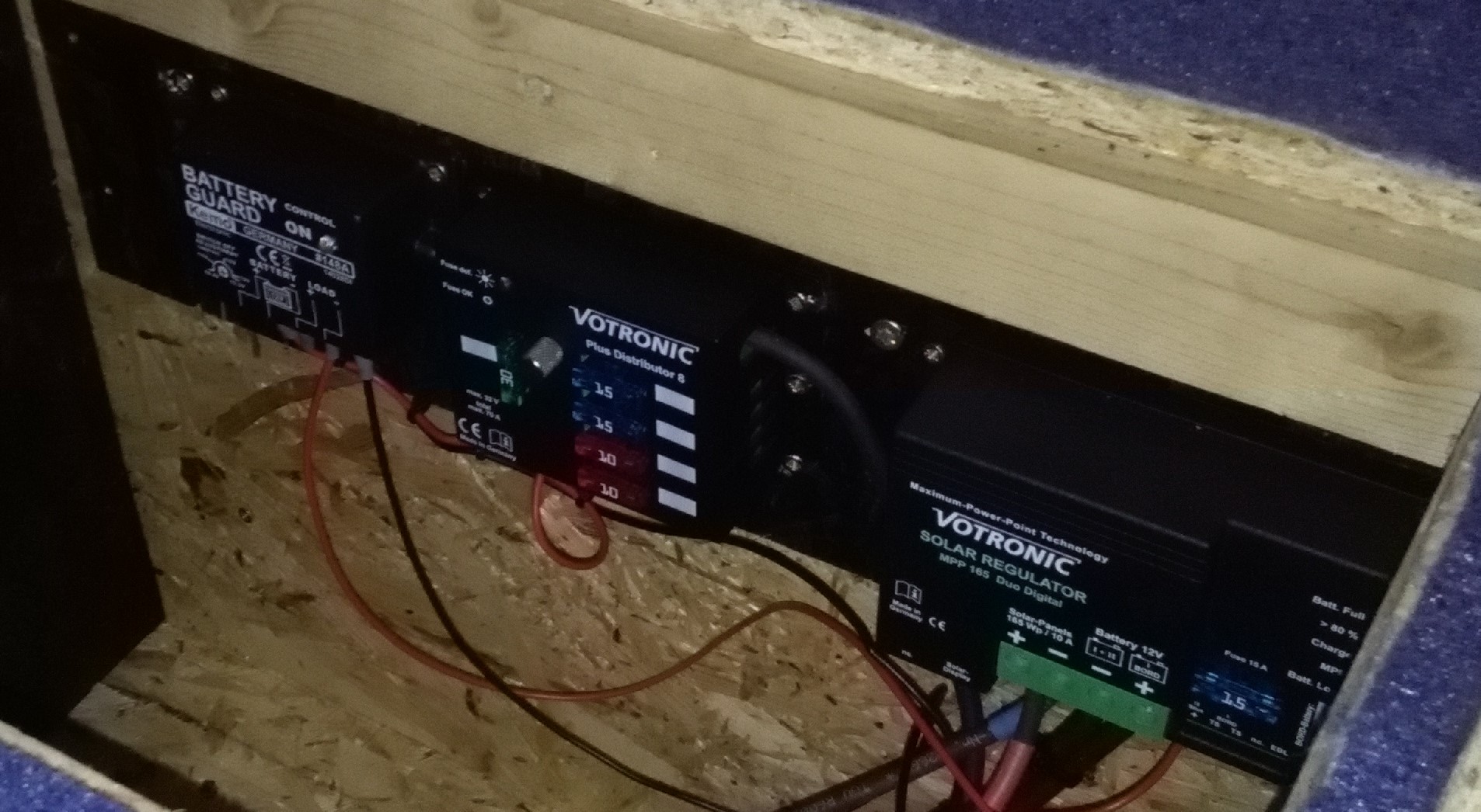 Da ist jetzt nur der Unterspannungsschutz für die Kühlbox, der Verteiler und der Laderegler verbaut.