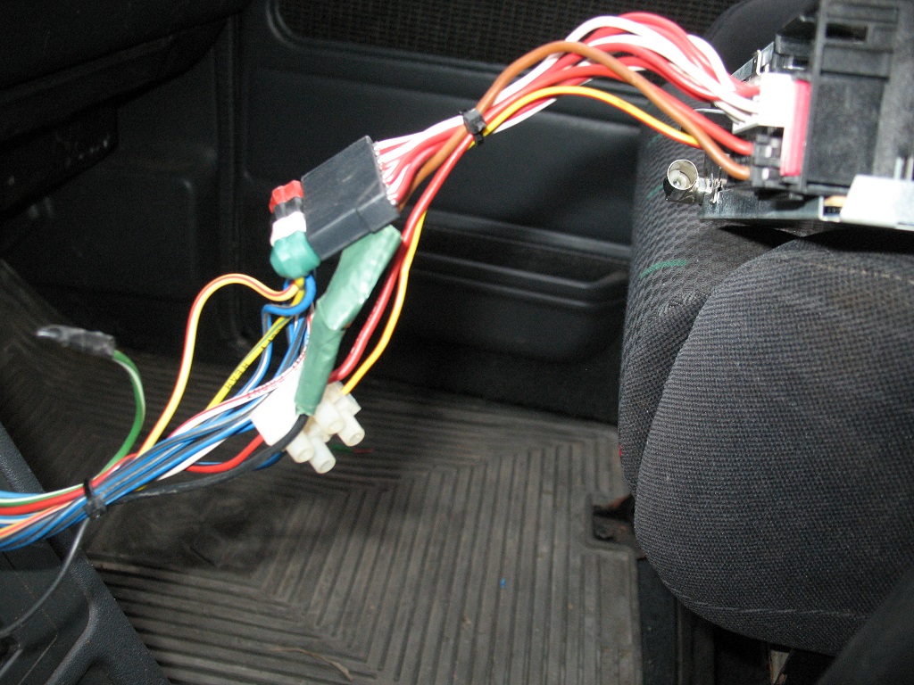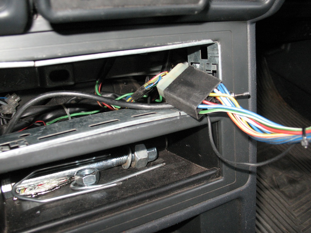 Ein teil vom Pajero Radiostecker. Gut zu sehen, die Masse - ein dünnes schwarzes Kabel, welches vom Adapter in den Schacht läuft.
