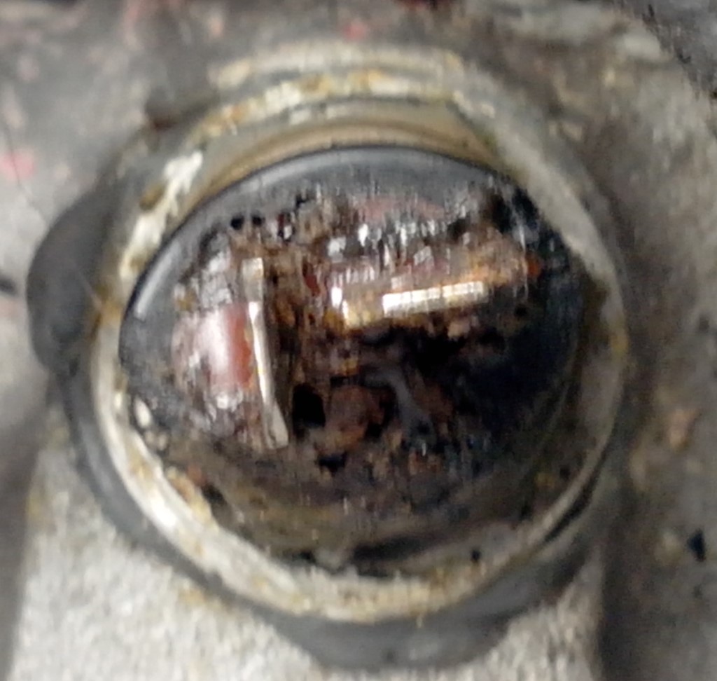 Leider sieht das Ding zum Einen ziemlich verkokelt aus, zum Anderen aber auch so aus als wäre der mit irgendeiner Pampe eingesetzt.