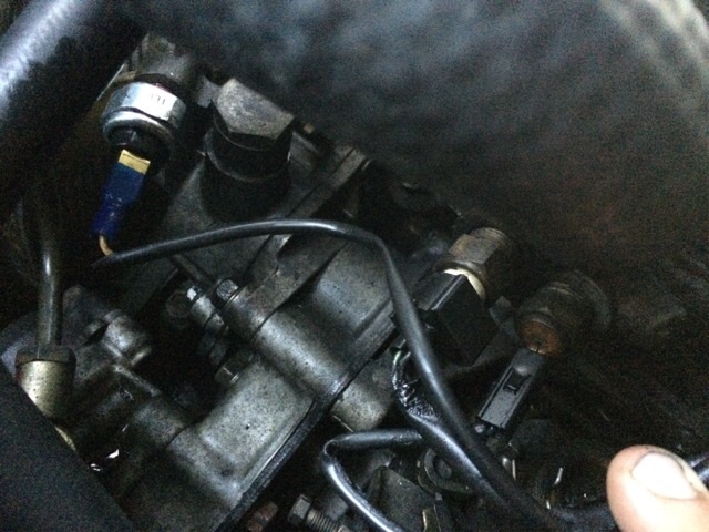 Öldruckanzeige: als ich meine dichtungen für die ESP bestellt hatte, hatte ich gleich einen neuen öldeuckschalter mitbestellt, weil beim alten gar stecker mehr dran war, da blieb nur noch die frage nach dem richtigen kabel, die logischste wahl war eins ohne stecker dran, nur zusammengetaped, aber von der länge passend.