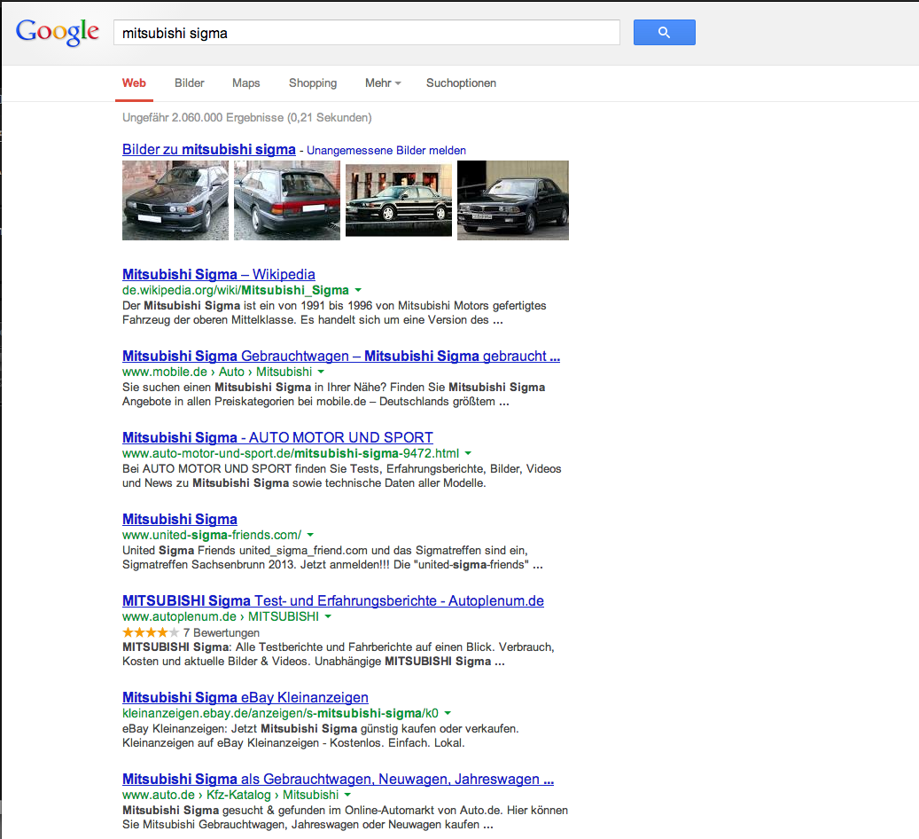Die Mitsu-Szene Seite findet sich so, bei Suche nach 'Mitsubishi Forum', auf Platz 12 oder so ... also 2. Ergebnisseite bei Standardeinstellung. Mit diesem Browser steht sie auf Platz 7