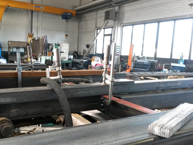 In einem Monat kommen dann die Schweißarbeiten um die Traversen wieder zu verbinden und zu verlängern. Dann kommt die Bodenplatte drauf.