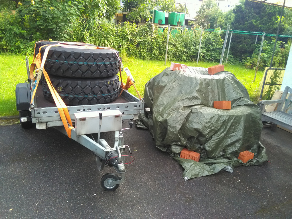 Jetzt steht das Zeug im Hof. Eigentlich wollte ich heute zum Mog und montieren, aber dank Südrad muss ja nochmal gewuchtet werden... Ist jetzt halt so.