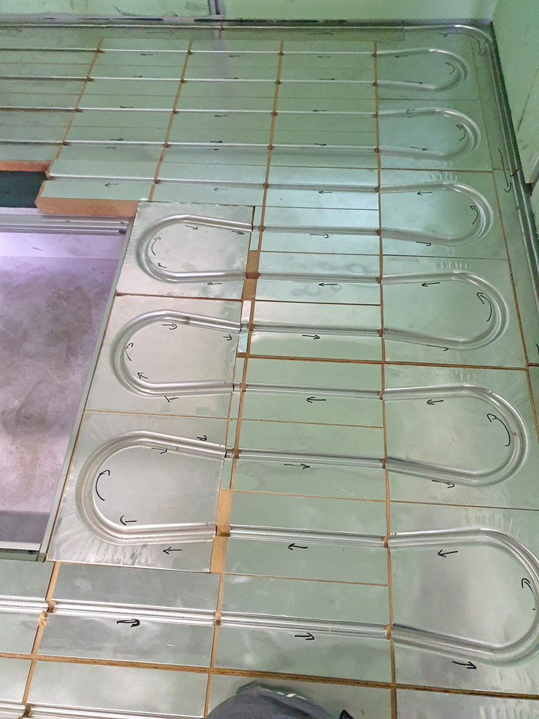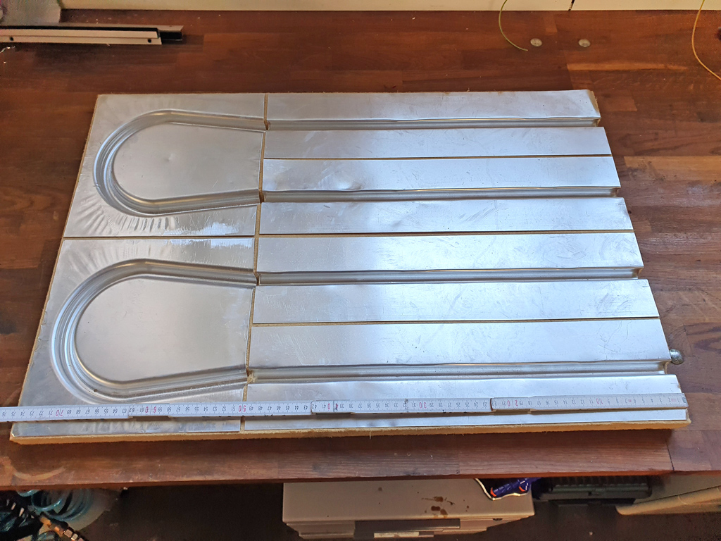 Mein Bekannter und Gas-Wasser-Scheiße-Handwerker des geringsten Misstrauens hatte einen echt guten Tipp für die Fußbodenheizung. Harfaserplatten mit integrierten Leitungsführung aus Alu. PERFEKT für unser Vorhaben.