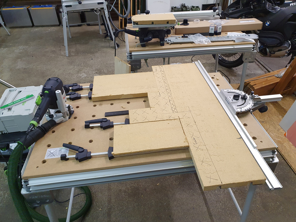 AAAAber, da sind ja die Keller, welche 5-6mm aufbauen... Also nachdem die Teile grundsätzlich passen... tapfer alles wieder frisch anzeichnen und die entsprechenden Teile wieder raus...