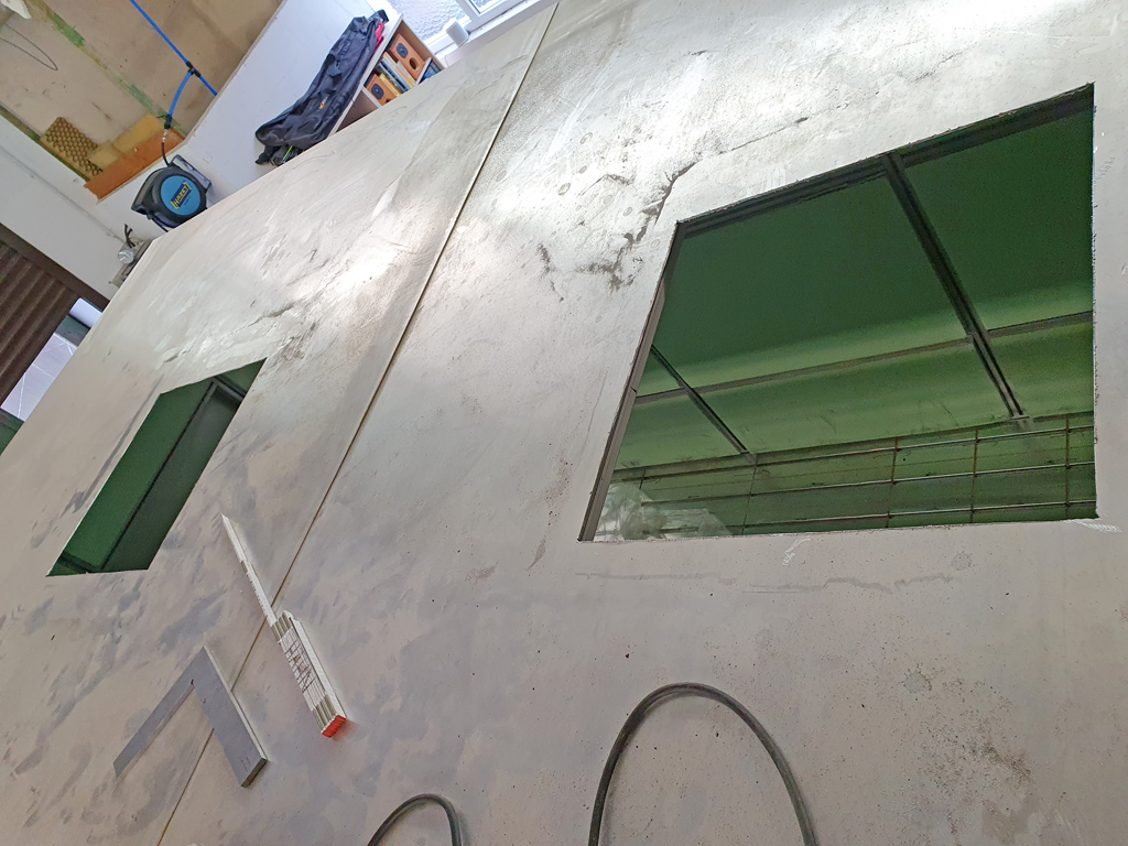 Dann mal rein damit, wir hatten vorher kleine Keile angefertigt um exakt zu positionieren. War aber netter Weise nicht nötig, es hat auf Anhieb gepasst. Das Ergebniss ist absolut zufriedenstellend.