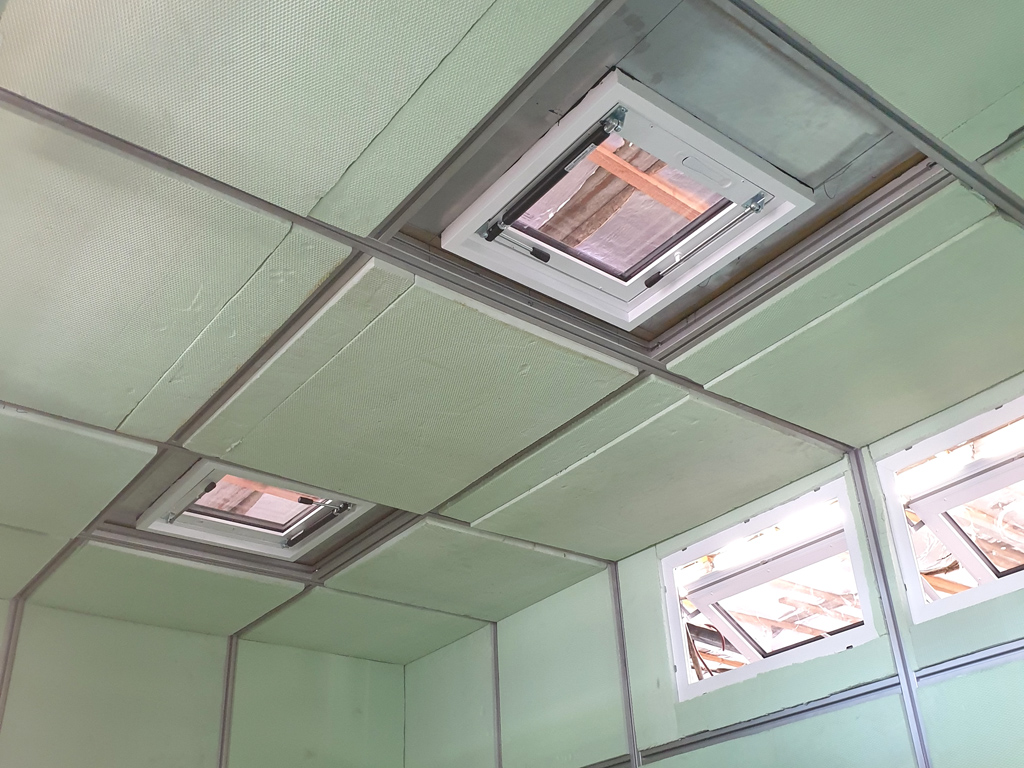 Es geht weiter, die Dachfenster sind nun auch drin.