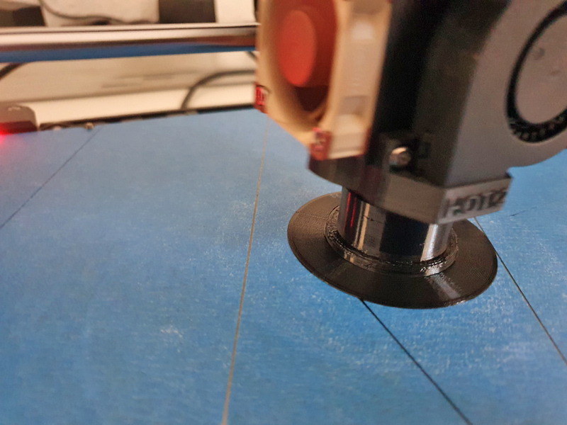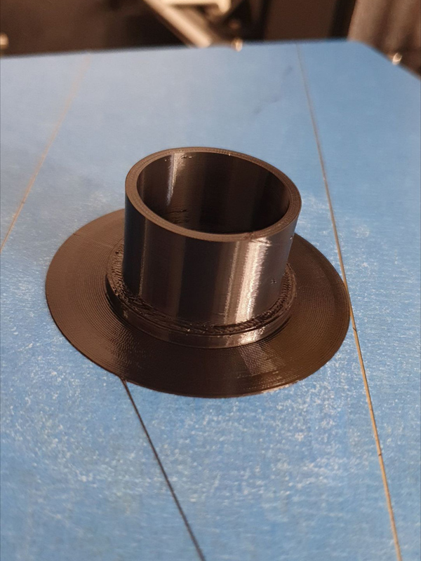 In dem Fall - Durchführung für die diversen Kabel und Schläuche der Standheizung - kurz das CAD-Modell gebastelt und dann mit dem 3D-Drucker und einem Filament, das nicht aushärtet, gedruckt. Da die Rolle eh offen war und nutzlos rumlag, habe ich einfach mal das Innoflex 45 genommen. (Thermoplastisches Copolyester-Elastomer, TPE-C).
