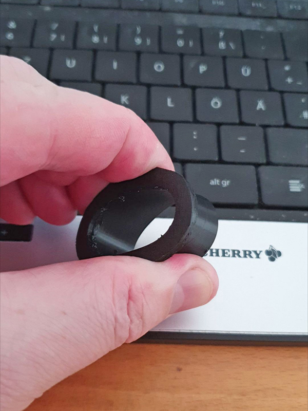Noch eine kleine Optimierung - Spätestens dieses Teil gibt es definitiv nicht zu kaufen. Meine gestrige Idee am späten Abend zu einer extrem robusten, aber dennoch flexiblen Schlauchhalterung: