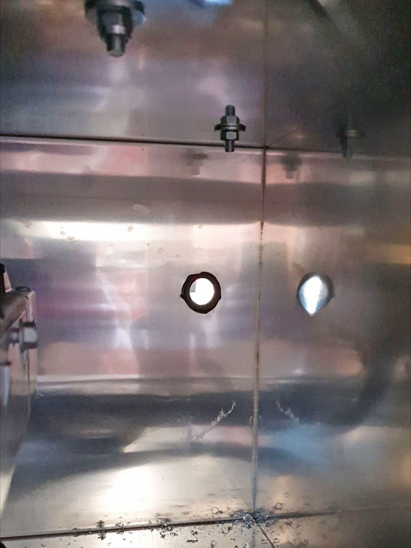 Nun gut, einfach tapfer Mut antrinken und dann irreversibel Löcher ins Alu schneiden... (Ich war sehr konservativ beim Trinken, daher musste ich noch 1-2x nachschneiden/schleifen... ;o) )