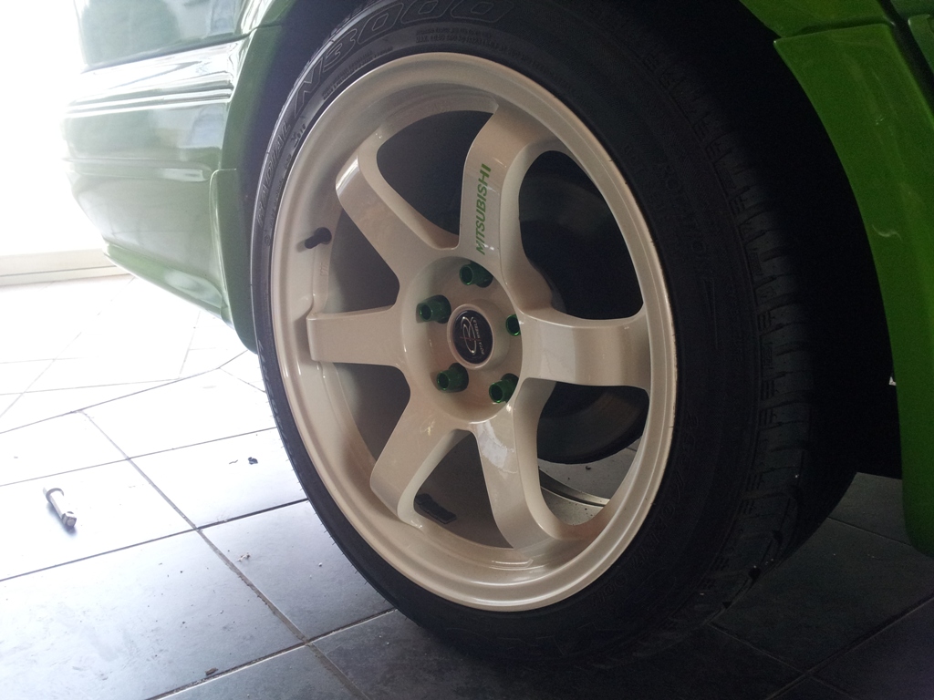 Mach nicht allzu viel Fett zwischen Felge und Bremsscheibe oder an die Radmuttern. Das Fett komprimiert sich beim festziehen.