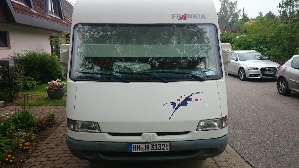 Das Wohnmobil ist ein Vollintegrierter, also der Aufbau ist komplett aus GFK, nix Metall oder Alu.