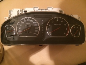 Da es ja im Moment etwas kühler draußen ist und leicht verschneit, hab ich mich aus Langeweile mal ans ändern des Tachos gemacht. Ich hatte mich nach Recherchen über einen HC-Tacho (Preise von 90€ aufwärts-konnte und wollte ich nicht zahlen) von diesem verabschiedet und mir solche Tachoringe bestellt. Eingebaut und das Ganze in Augenschein genommen. Hm, sah irgendwie trotzdem scheisse aus. Also musste doch ein solcher HC-Tacho her. Fündig geworden bin ich über ein Verwerterportal. Die wollten bloß 30€+Versand - da hab ich dann zugeschlagen. Gut, der zeigt rund 50000km mehr an, aber egal. Optisch ein Unterschied wie Tag und Nacht. Die Kilometer hätte ich mir hier vor Ort noch anpassen lassen können, aber 150 Euronen ist es mir nicht wert.