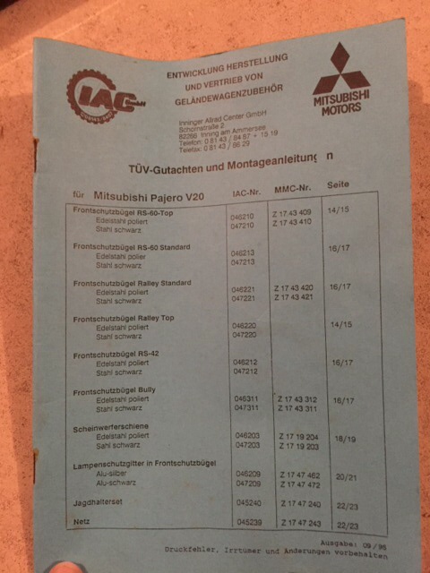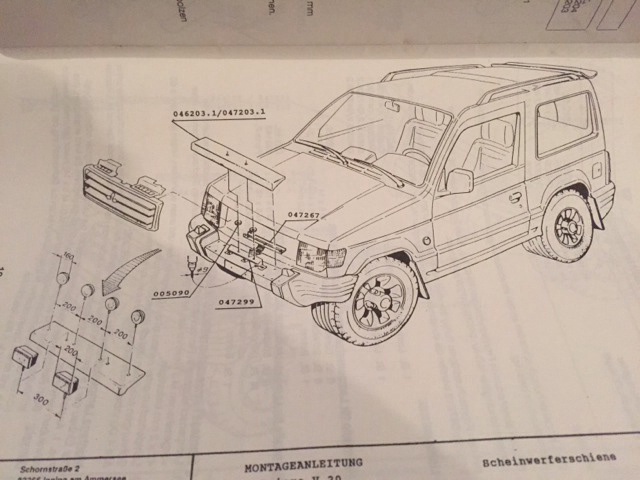 Habe eine Originale Mitsubishi Scheinwerferschiene aus Edelstahl inklusive Verstärkungen, Zubehör, Anbauanleitung + ABE für Anbau an der Stoßstange eines Pajero V20 (91-99). Dort können 2 bzw. 4 Scheinwerfer montiert werden.