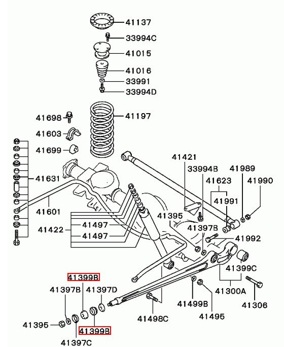 was aber zusätzlich auch gemacht werden muss, sind die gummibuchsen der hinteren längslenker. hat jemand von euch ne teilenummer, damit meine werkstatt auch die richtigen bestellt. auf anhieb hat er nichts gefunden in seinem computer.