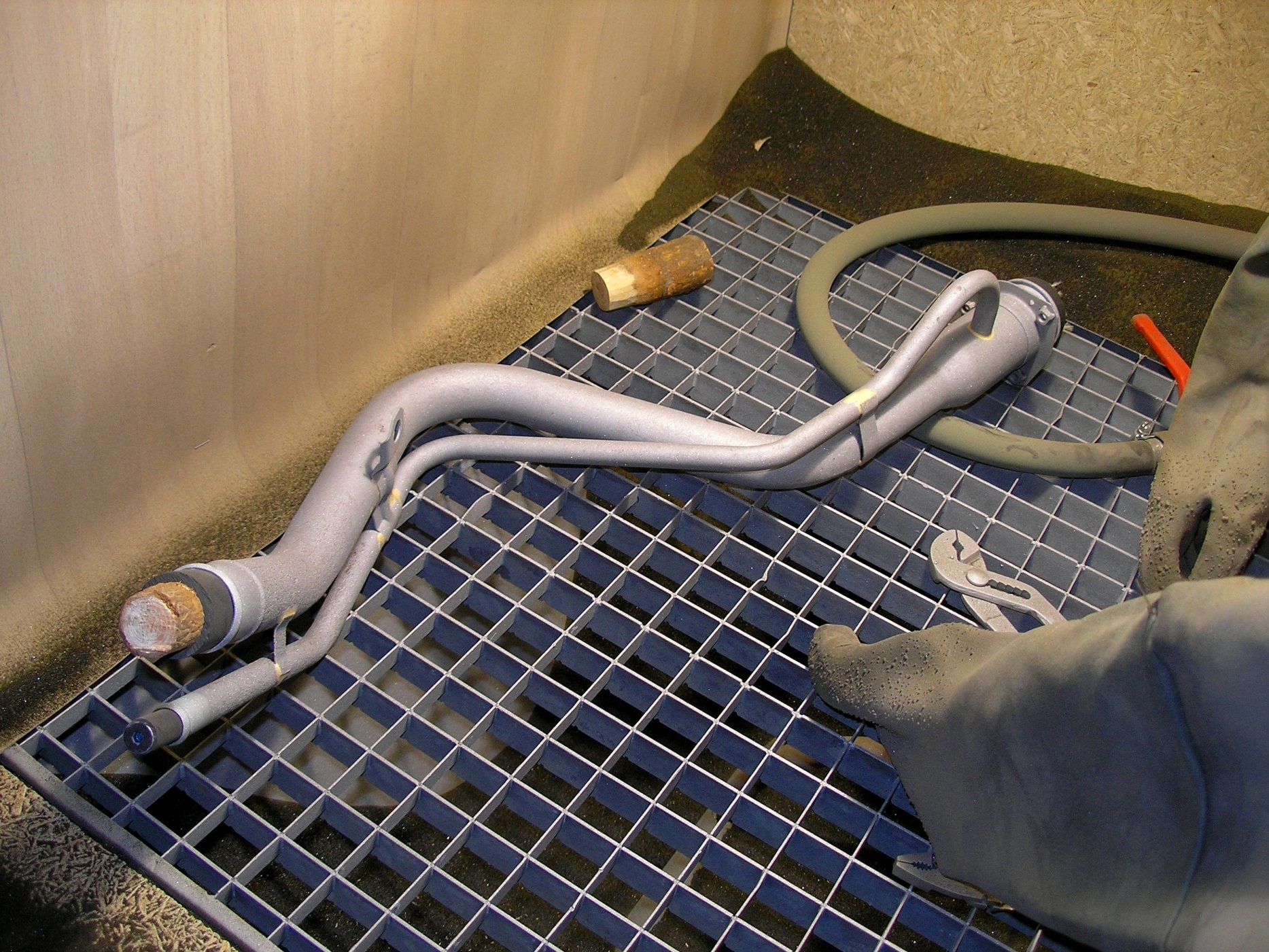 Von den Tankrohren habe ich schon 2 Stück gestrahlt und lackiert.