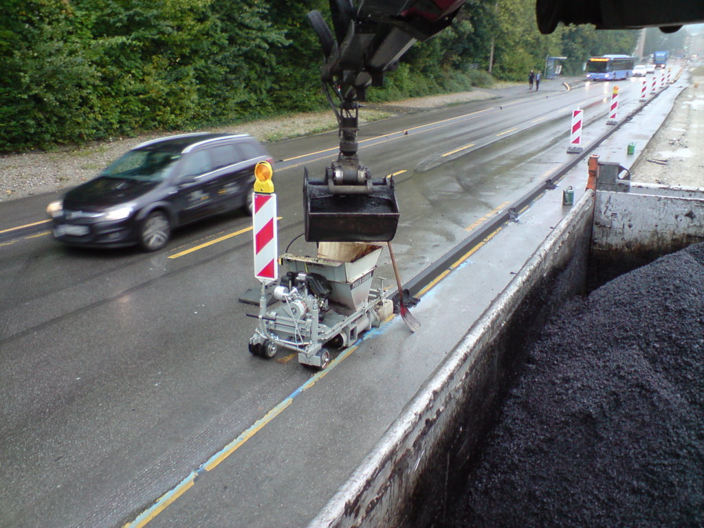 Hier beim asphaltieren eines Teiches immer schön rundrum...