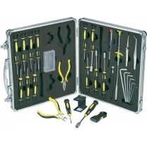 Das 30-teilige Feinmechaniker-Werkzeug-Set enthält sowohl eine Garnitur Feinschraubendreher, feine Stecknuss-Schraubendreher der Größen 5 bis 10 Millimeter, je eine kleine Kombi- und Schneidzange sowie Innensechskantschlüssel mit Kugelkopf. Ergänzt wird das Set mit kleinen Handwerkzeugen wie einer Lupe, einer Magnet-Teleskopverlängerung und einem langen Krallengreifer. Die Qualität ist für gelegentliche Arbeiten mit nicht zu hohem Anspruch hinreichend.