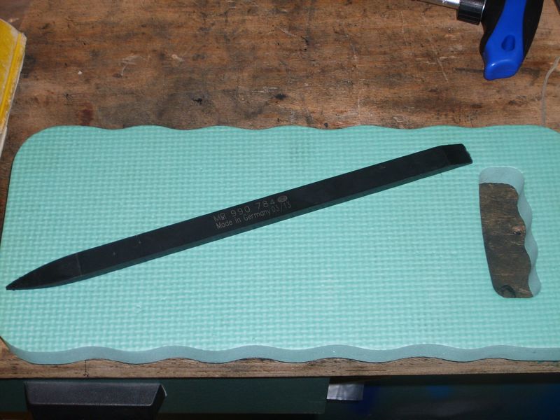 Auf dem Bild ist es nicht so zu sehen dieses Werkzeug wird zur Mitte hin dicker. So kann man es zwischen Scheibe und Rahmen schieben.