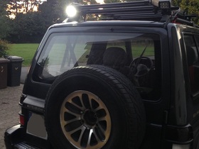 Hinzugefügt wurde ein Träger und ein Korb von Thule, sowie zwei 18W LED hinten und eine 180W Leiste vorne.