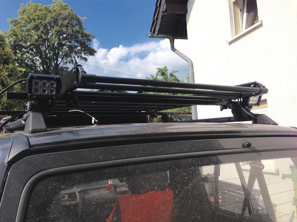 Mir war wichtig, die LED Leisten so zu montieren, das der Korb voll funktionstüchtig ist. Vorteil: Die Leisten sind nicht der höchste Punkt am Auto.