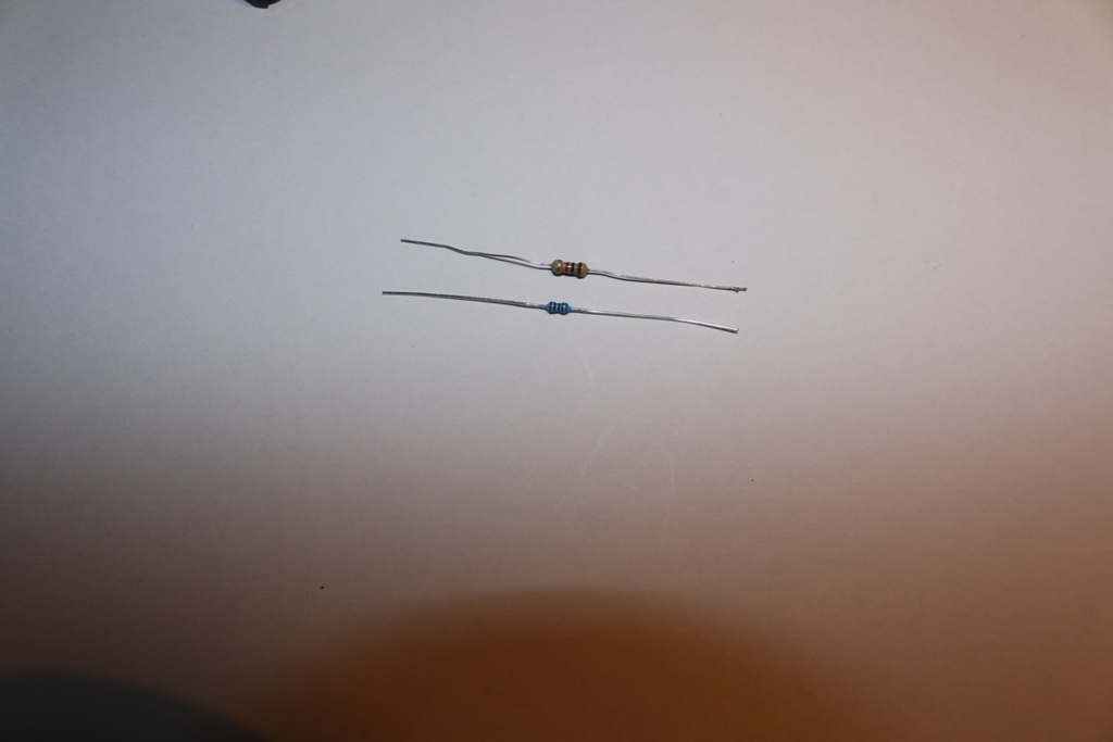 Als erstes der Größenvergleich, oben ein Kohleschichtwiderstand, unten ein 0204 Metallschichtwiderstand.