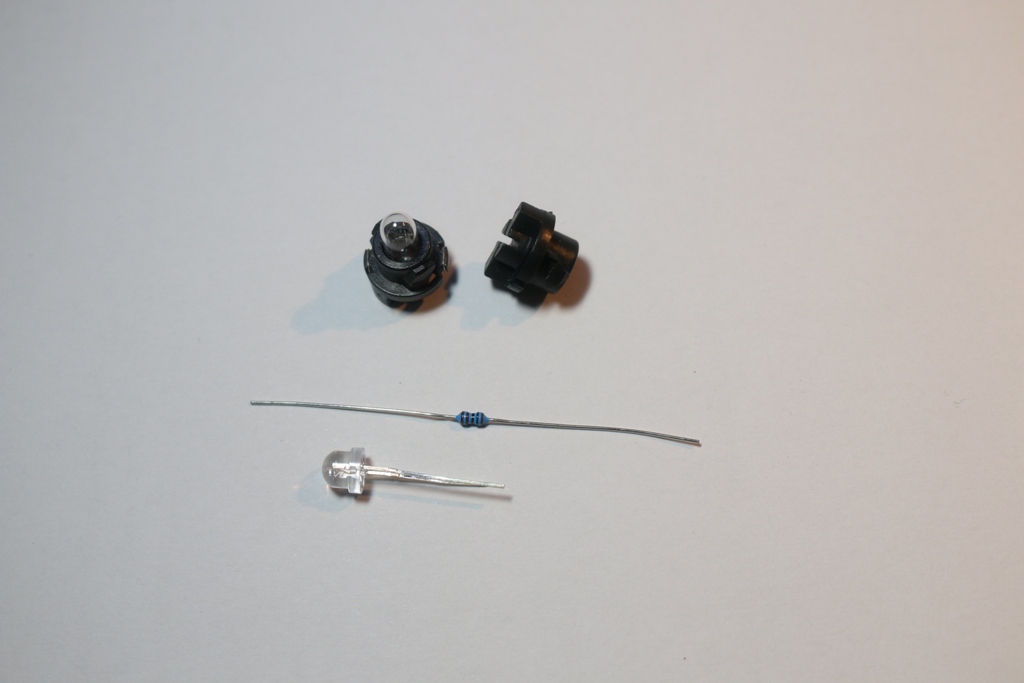 Für die Tachobeleuchtung könnte 5mm kaltweiß extrahell funktionieren, die Glühlampen haben ja ne blaue Kappe. Allerdings könnten die sehr punktuell werden, trotz großem Winkel. Das wären dann weitere Experimente.