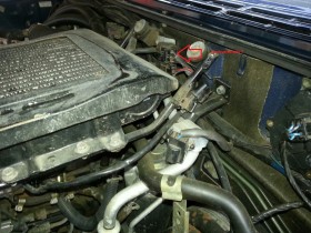 Der Intercooler muss runter. Der hat ein Schutzblech drüber und und ich empfehle das als erstes zu demontieren. Danach kommt man viel besser an die Schlauchschellen. Dann hab ich die 4 Schrauben des eigentlichen Intercoolers gelöst und die Schläuche abgezogen. Am Intercooler gibt es noch Steckverbinder für die Sensoren. Die müssen natürlich auch noch ab. Ein super Tipp aus dem Netz: den Intercooler mit Benzin spülen! Bei mir kam einiges an Dreck raus! Immer wieder rein schütteln ausgießen und von vorne. Am Ende kams klar wieder raus. Zur Sicherheit hab ich das Ding über Nacht ausdünsten lassen.