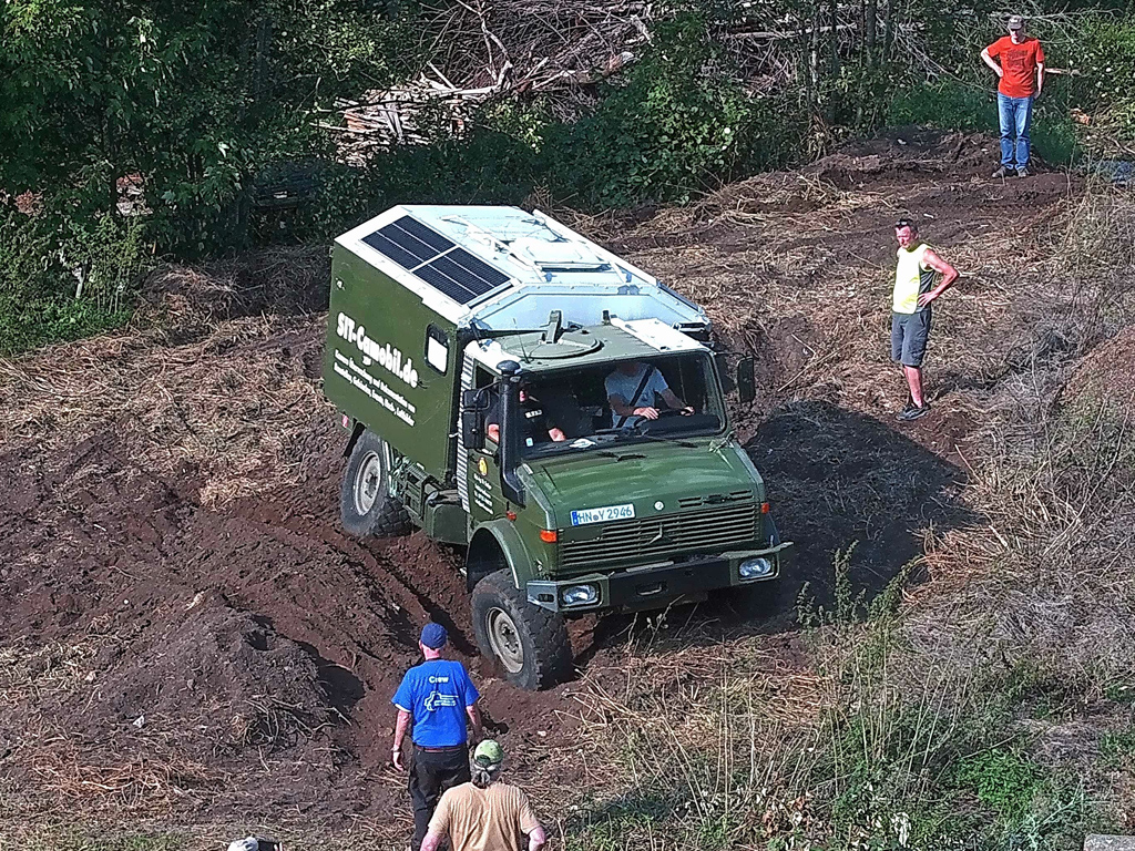 Dann das Ganze nochmal "normal" mit ca. 45° anfahren, auch klar, alles rein was an Untersetzung und Sperren da ist, und durch.