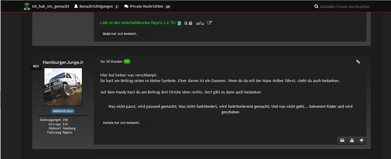 Aaaber: Es ist User und Forenübergreifend, nirgendwo ist der Bedankenknopp zu finden.