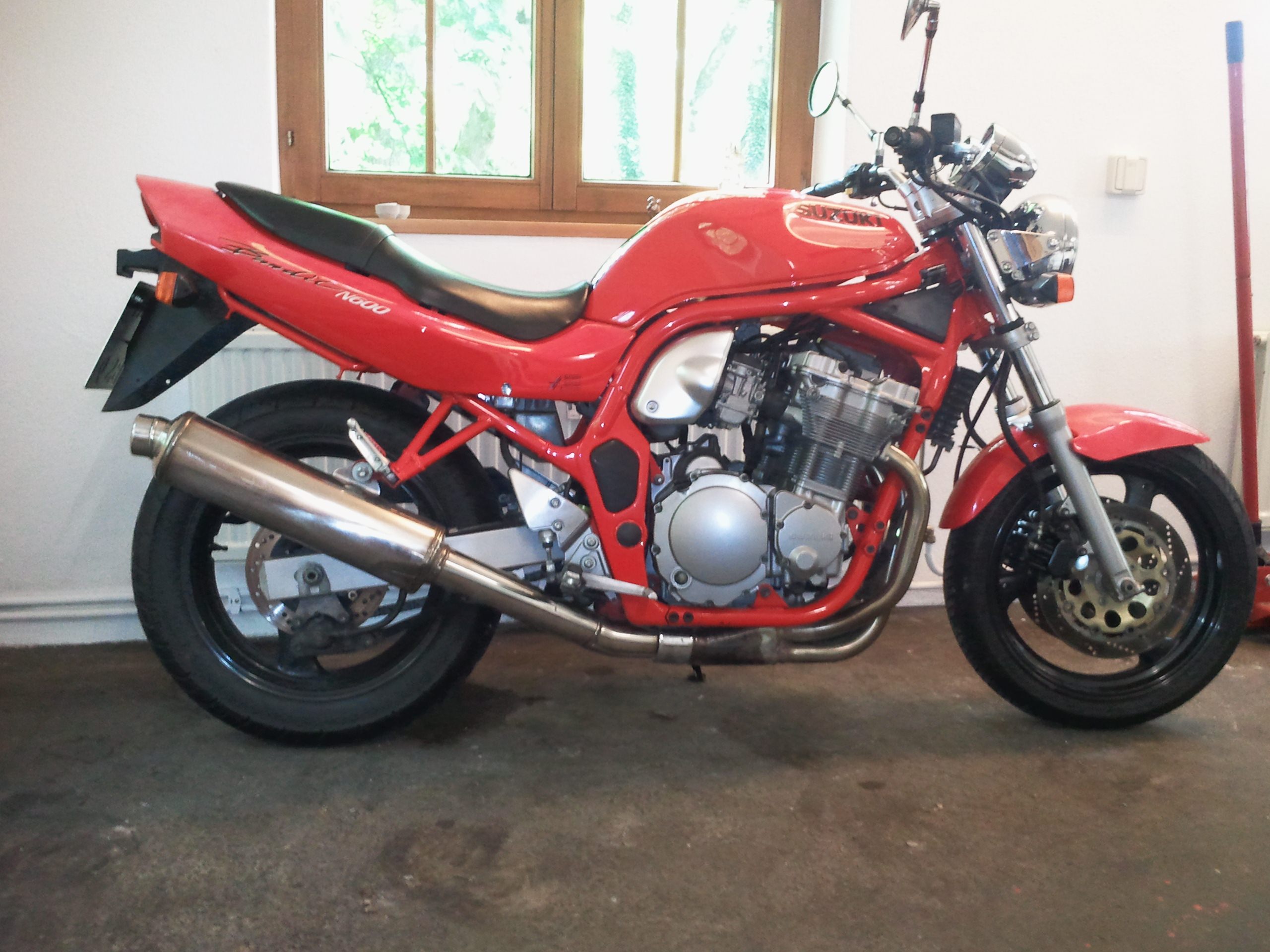 Sodele, wir haben Zuwachs bekommen. Eine Feuerrote Susuki Bandit N. Gerade heute erbeutet. Der wird meine Freundin das fürchten lehren. Leider konnten wir sie heute nicht gleich mitnehmen. Aber nächste woche wird sie auch noch irgenwie, irgenwo in die Werkstatt mitreingequetscht.