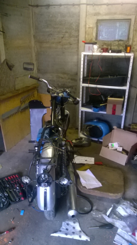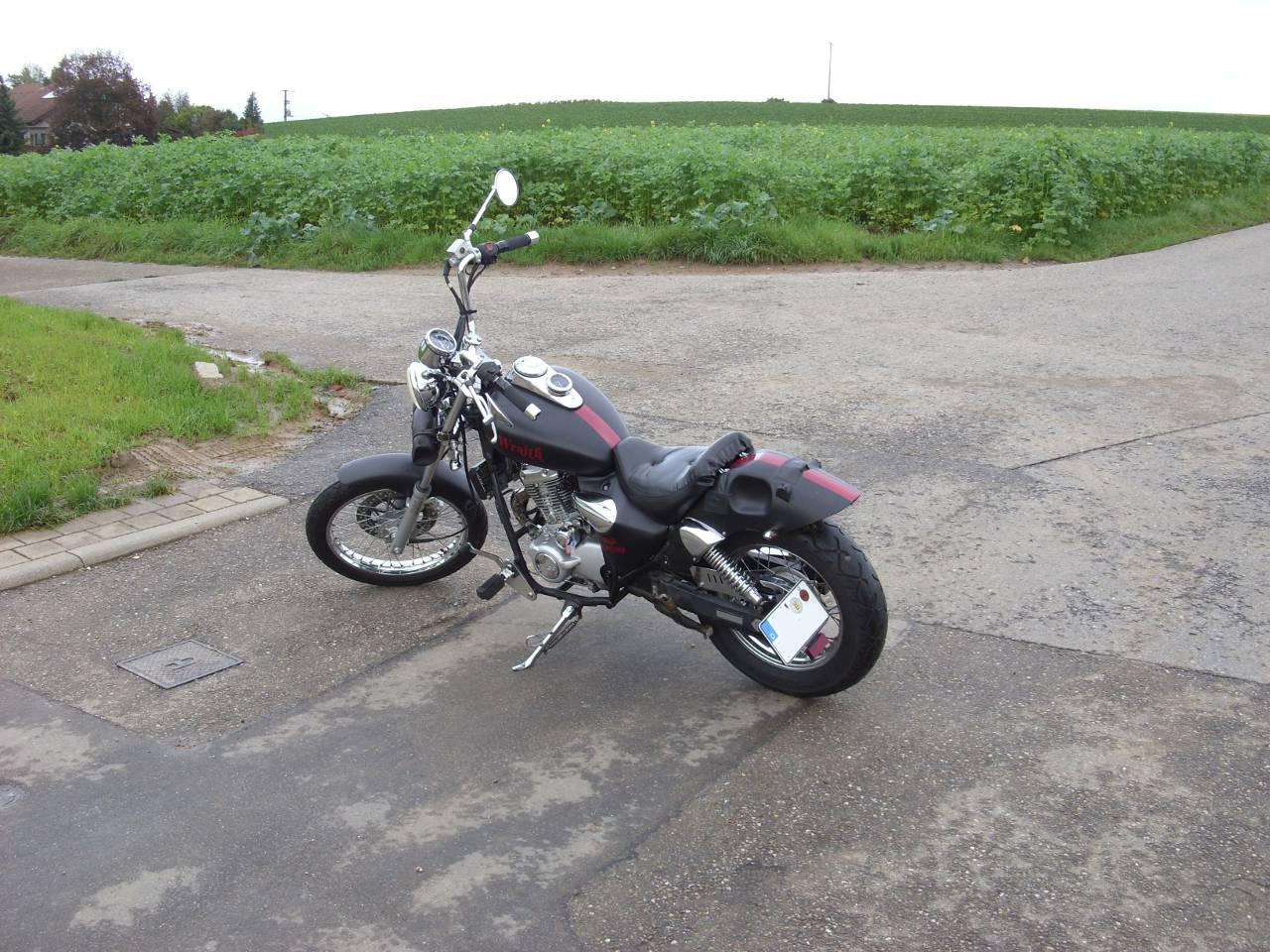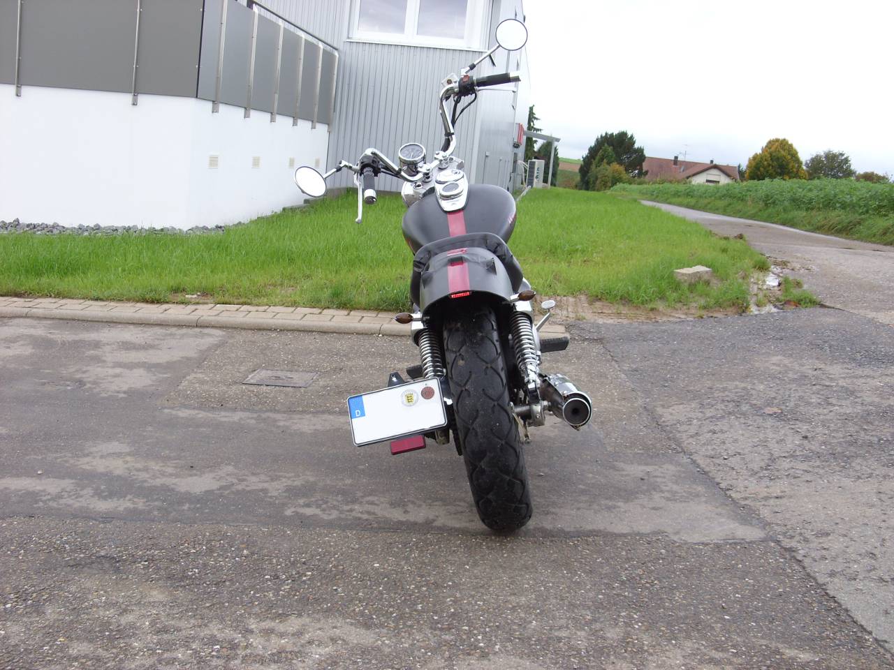 Das wars an momentanen Veränderungen. Beim Sitz bin ich mir noch nicht sicher ob ich den so lasse oder ob ich nicht doch nen universellen Einzelsitz verbaue, dann allerdings nicht mit Federn unterm Sitz, sondern fest verschraubt. Den Heckfender werde ich dann übern Winter noch mit GFK Matten umgestalten, so das die ganzen Löcher, die momentan erstmal temporär mit Panzertape verschlossen wurden, weg kommen und das ganze dann eine schöne abgerundete Form ergibt. Und wenn ich dann schonmal am laminieren bin, werde ich auch noch die Seitendeckel von den Chrombeulen befreien so das sich da ne schönere Linie ergibt.