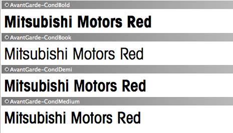 Da müsste ich jetzt alle Schnitte der AvantGarde suchen .. aber vielleicht habe die für den Mitsubishi Motors Schriftzug ja einen eigenen Schnitt erstellen lassen -- wäre fast normal für so nenn grossen Laden, und geben die Standard Avantgarde vor für die Händlernamen etc, damit dies einfacher haben und es trotzdem passt ...