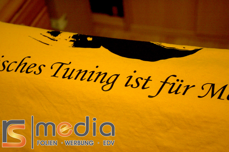 Digitaldruck auf Textil kenn ich nicht, kling aber interessant für kleine Auflagen ... weil Flexdruck habe ich zwar, würde ich aber nicht machen lassen, das ist meines Erachtens nur etwas für Miniserien oder Einzelstücke, die Folie wird irgendwann brüchig und .. naja.