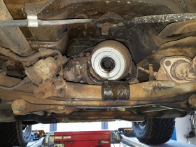Ist eine blöde Stelle über dem Verteiler-Getriebe, aber von unten müsste man mit asiatischen Kinderhänden da eigentlich irgendwie rankommen.