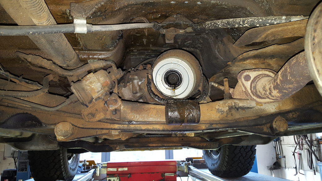 Ist eine blöde Stelle über dem Verteiler-Getriebe, aber von unten müsste man mit asiatischen Kinderhänden da eigentlich irgendwie rankommen.