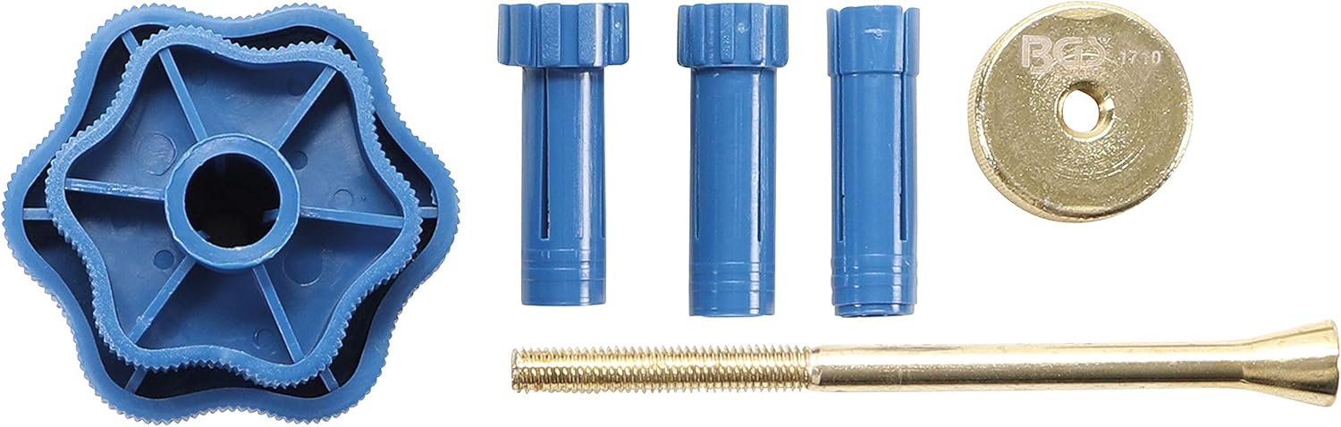 Zum Zentrieren war ich damit erstaunlich zufrieden, ging auf der Werkbank viel einfacher als mit den klassischen Dornen unterm Auto: