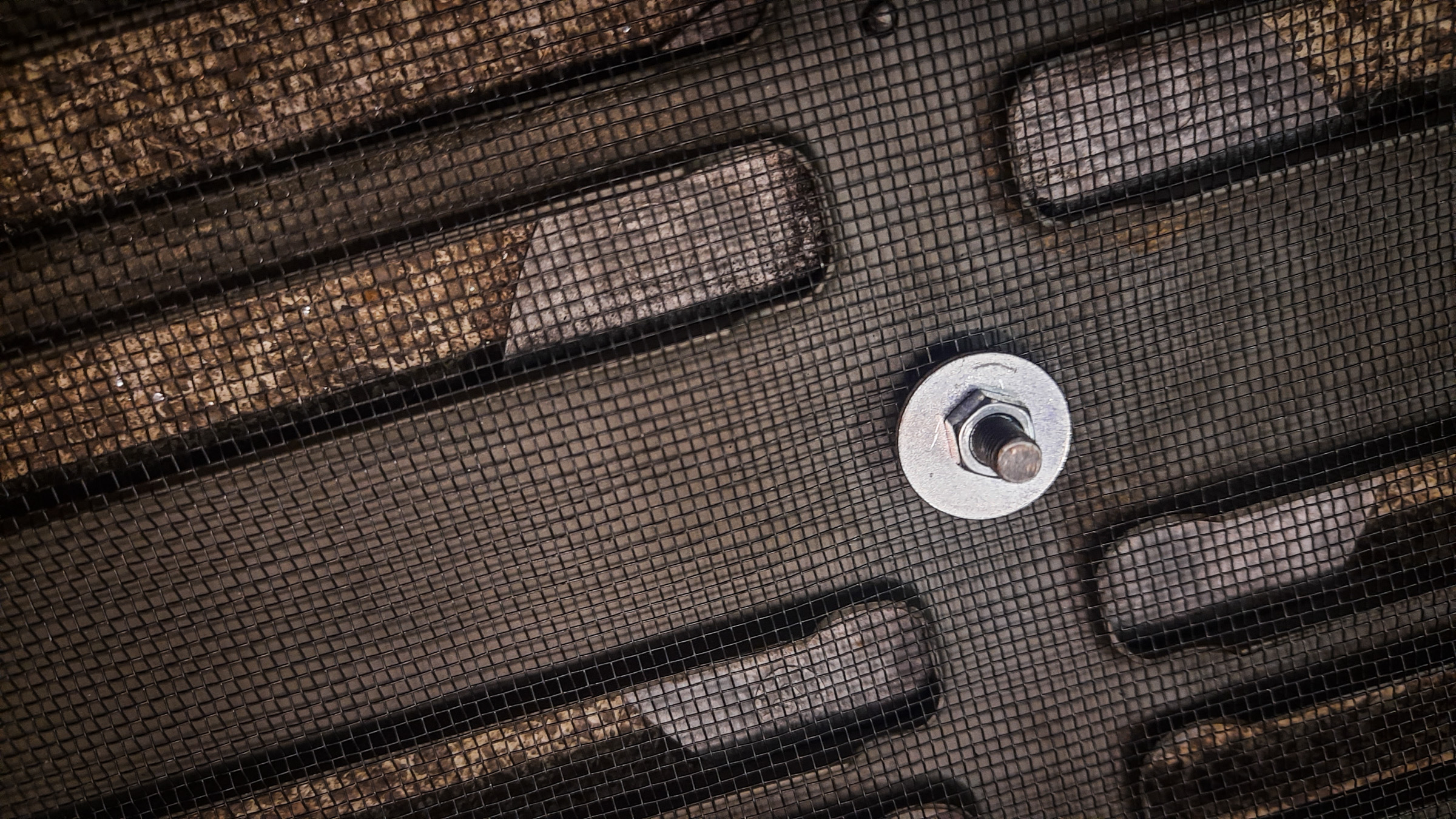 Also war die Idee, ein robustes Fliegengitter davor zu tackern. Hält das Viehzeug draussen und vor allem auch Grassamen und solches Zeugs.