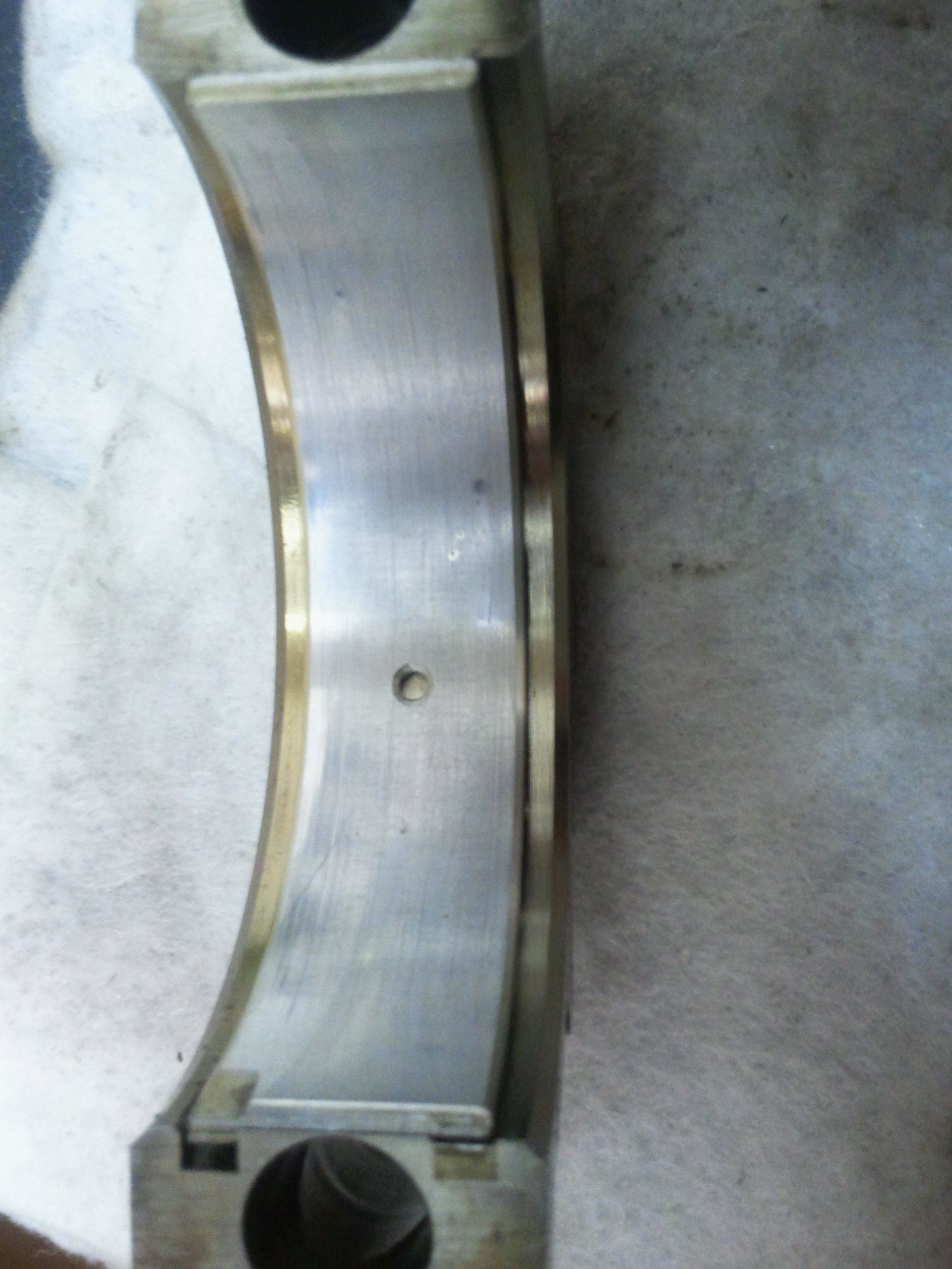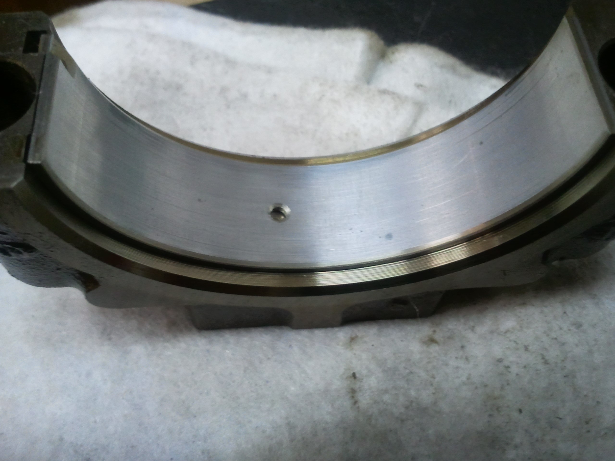 Also, wenn man das Spiel trotz des vorhandenen Ölfilms spürt, dann hört man es ganz eindeutig und dann ist der Motor auch fertig. Die Lager vom Sigma sind Mehrstoff- oder Mehrschichtlager, wobei die einzelnen Schichten nur sehr dünn sind und erst wenn das Lager wirklich am Ende ist und alle Schichten "abgenutzt" sind, spürt man auch ein Spiel. Dein Lager auf den Fotos sieht noch richtig gut aus, die Laufschicht ist noch vorhanden und die kleinen Einschüsse (wenn es nicht sogar Schmutz ist) sind nicht weiter schlimm.